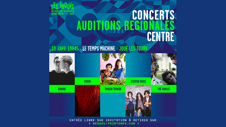 Le 10 janvier 2020, au TEMPS MACHINE à Tours, l’Antenne Centre-Val de Loire présentera les groupes qu’elle a retenues :