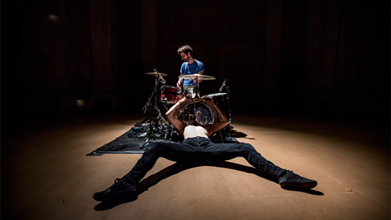 «Blast» est né de la rencontre entre le batteur Jean-Baptiste Geoffroy et la danseuse Hélène Rocheteau. C’est un duo d’énergie brute qui commence comme un rituel. Une plongée dans le corps et le son, intimement liés.