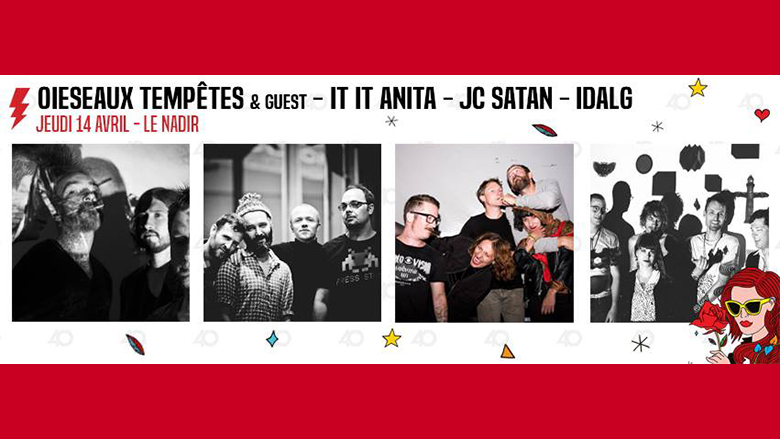 Les Canadien de I.D.A.L.G. (réinvention du groupe “Il Danse Avec Les Genoux”), figure de la scène underground de Montréal ouvriront la soirée avec leur rock arty, garage et psychédélique.