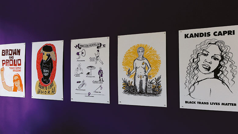 Ce collectif de féministes englobe un projet qui vise à rassembler des affiches féministes et lesbiennes, faites par des femmes, des gouines, des trans FtM, dans le monde entier, et les diffuser sous plusieurs formats. L’objectif est de donner de la visibilité aux combats des femmes féministes et des lesbiennes, pour en inspirer d’autres et explorer l’outil graphique que sont les affiches. Tout cela s’inscrit dans un souci de créativité, d’inventivité, de diversité culturelle et de liberté de partage. La collecte des affiches a commencé en juin 2015 et à ce jour, 31 affiches ont été rassemblées. Toutes les affiches sont en accès open source sur le site web, afin qu’elles soient téléchargeables par tou.te.s. Le projet est à but non-lucratif et les personnes investies le font bénévolement.