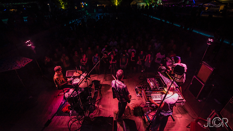 Formé en 2011, Le Réveil Des Tropiques est l’équipée libre et vertigineuse de membres de Oiseaux-Tempête, Casse-Gueule, Eddie 135, Henryspenncer, Ces cinq là risquent le parti pris d’improviser intégralement leur musique, enregistrent depuis plus de 5 ans tous leurs concerts, et suspendent sur scène comme autant de coupes de vies éphémères des thèmes en mouvement plutôt que des titres. Ils jouent le kraut-rock de Neu ! cadencé à la mort, la sève psychédélique du Floyd colorée de tanin, Mogwaï en goguette plongé dans un grand bain d’ocre, et les opuscules bruitistes d’une sarabande de Sonic Youth.