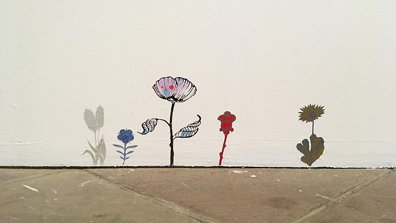 À l’invitation du Domaine national du Château d’Angers, l’artiste nantais Régis Perray réalise un ensemble de fleurs en papiers peints, inspiré des motifs végétaux visibles sur la tapisserie de l’Apocalypse.