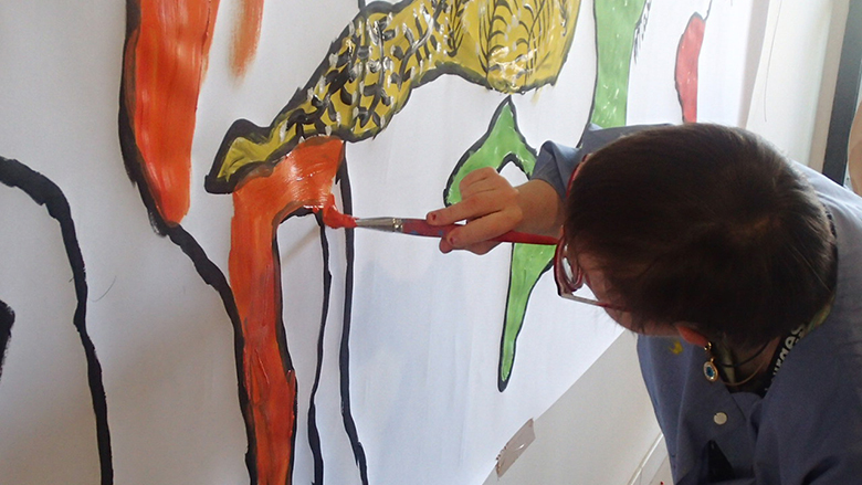 Ce projet consiste en la création d’une fresque connectée à partir de peinture ou matière conductrice peinte, accrochée ou collée directement sur une surface transportable. Chaque participant peut réaliser un pochoir ou un dessin en lien avec une thématique choisie au préalable. Chaque dessin est connecté à la Touchboard card. Le fait de toucher le dessin déclenche un enregistrement sonore racontant une histoire en lien avec un dessin.